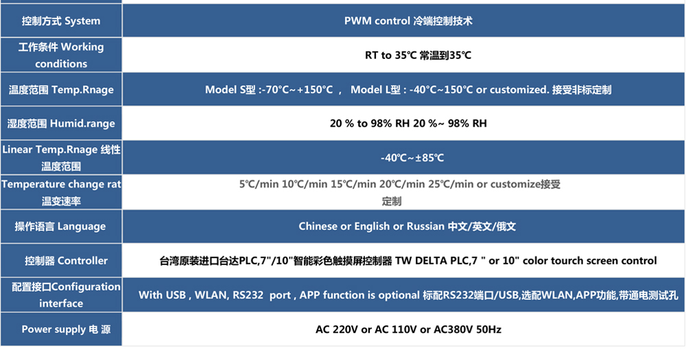 快速溫變試驗箱型號命名說明 及 參數(shù)表